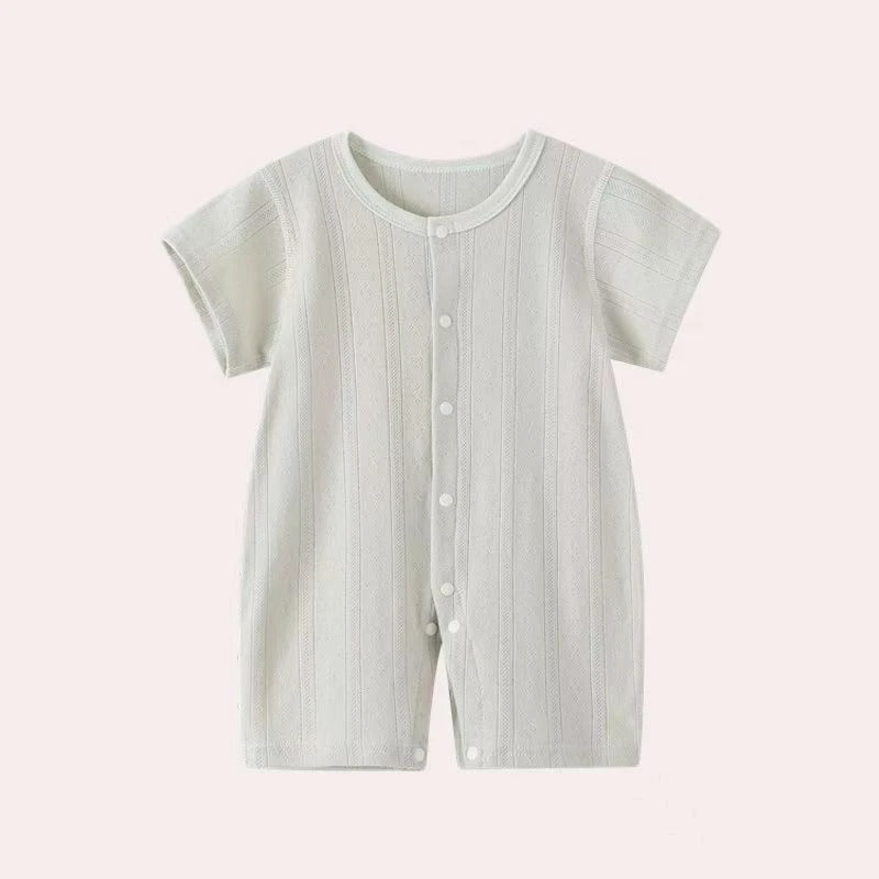 Låt din bebis njuta av sommaren i vår tunna och luftiga babyromper. Perfekt för varma dagar, med mjukt och andningsbart tyg som håller huden sval och torr. Enkel knäppning gör blöjbyten smidiga, och den lätta passformen ger full rörelsefrihet. Skonsam mot känslig hud och lätt att tvätta – en favorit för både barn och föräldrar. Den stilrena designen passar till både lek och fest.