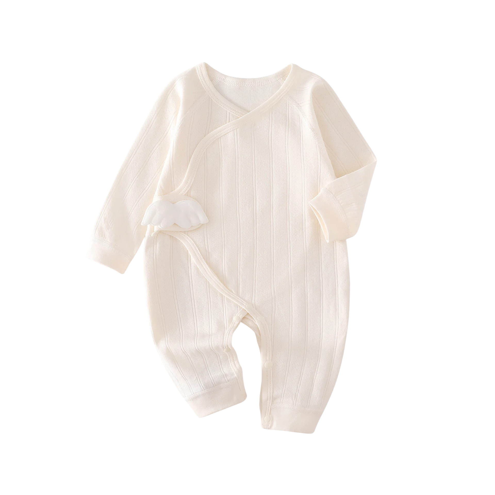 Ge din bebis den skonsamma komforten den förtjänar med denna stilrena babybody i 100% bomull. Tyget är mjukt, hudvänligt och perfekt för känslig babyhud. Den smarta omlottstängningen gör påklädningen enkel och bekväm – både för dig och din lilla. Idealiskt som vardagsplagg eller under en overall. Naturnära design i varm vit nyans passar både flickor och pojkar. Ett hållbart val för moderna föräldrar som värdesätter både kvalitet och estetik.