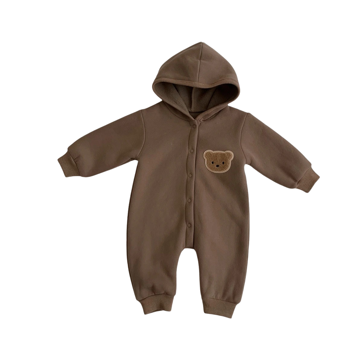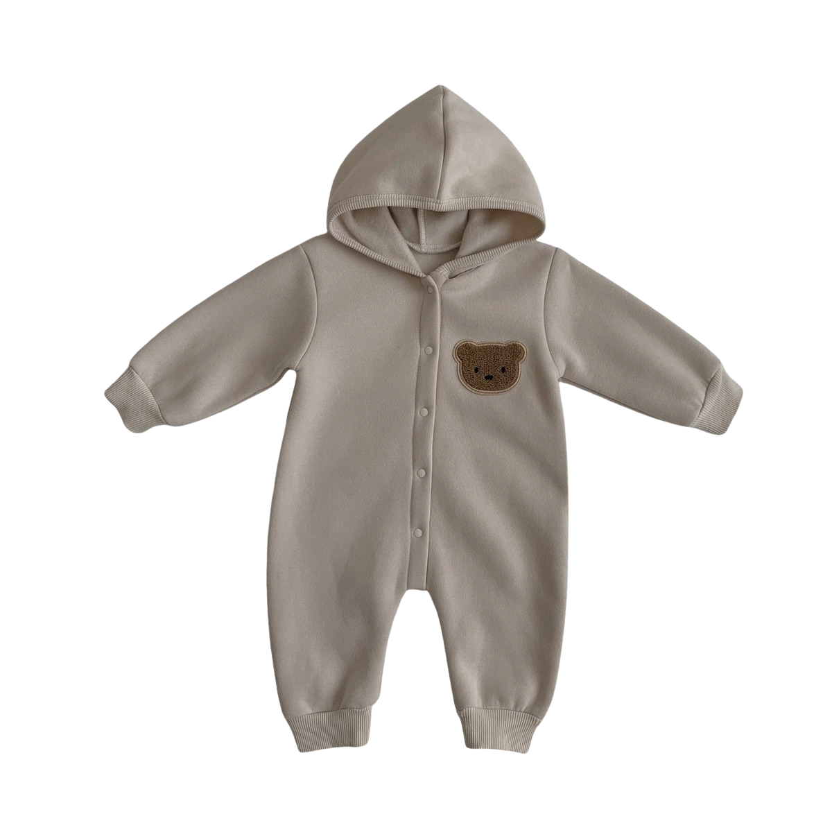 Varm och mjuk babyoverall med björntryck – perfekt för trygghet och komfort